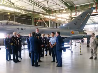 El coronel de la Base Aérea, Julio Nieto, le ha explicado cuál es la situación actual de la dotación del C-16 Eurofighter perteneciente al Ala Número 14, que se desarrolla de forma activa y plena en Albacete desde abril de 2014, y que se encarga del adiestramiento del personal y del mantenimiento en estado operativo los medios asignados para contribuir en la vigilancia y control del espacio aéreo de soberanía nacional.
