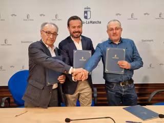 El consejero de Desarrollo Sostenible, José Luis Escudero, ha firmado este viernes dos convenios de colaboración con los alcaldes de los municipios de Riba de Saelices, Ricardo Villar, donde se ubicará el nuevo punto de información del Parque Natural del Alto Tajo; y también con el alcalde de Caspueñas, José Antonio Alonso, donde se pondrá en marcha el primer centro del paisaje protegido del río Ungría.