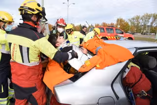 El primero de estos escenarios ha sido el propio accidente de tráfico del que parten el resto de intervenciones, que en un principio se trata como un siniestro vial normal y corriente con heridos y personas que hay que desencarcelar de los vehículos, por lo que se han desplazado los recursos habituales en este tipo de sucesos, como son efectivos de la Policía Local, el Sescam y los bomberos.