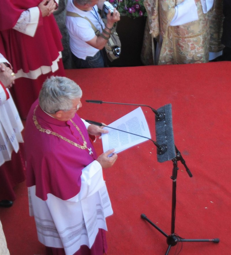 De este modo se ha pronunciado el primado toledano, bajo el Arco de la Sangre y frente a la Custodia de Arfe, ante la mirada atenta de centenares de personas que se han congregado en la Plaza de Zocodover para escuchar su alocución.