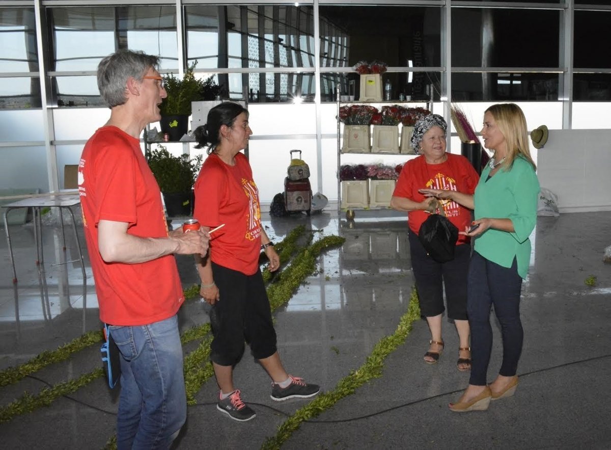La concejal de Festejos del Ayuntamiento de Toledo, Maite Puig, y la presidenta de la Asociación Toledana de Empresarios Floristas, Deborah Rodilla, han presentado este lunes el proyecto de decoración floral del Corpus 2017 en el que trabajan más de 100 floristas de toda España y que contará con 2.000 plantas, 4.000 metros de guirnalda, 25.000 tallos y 184 montajes florales a lo largo de todo el recorrido procesional, cuyo color protagonista será el rojo carmesí.