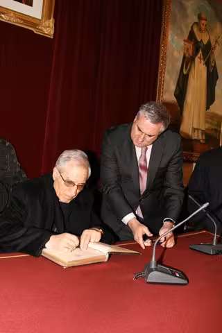 Durante su visita al edificio consistorial, el cardenal se ha interesado por los demás personajes relevantes en la historia del municipio, cuyos retratos jalonan el salón de plenos, así como por las lápidas que recogen palabras que en su día escribió el santo doctor relativas al papel de quienes gestionan la cosa pública.