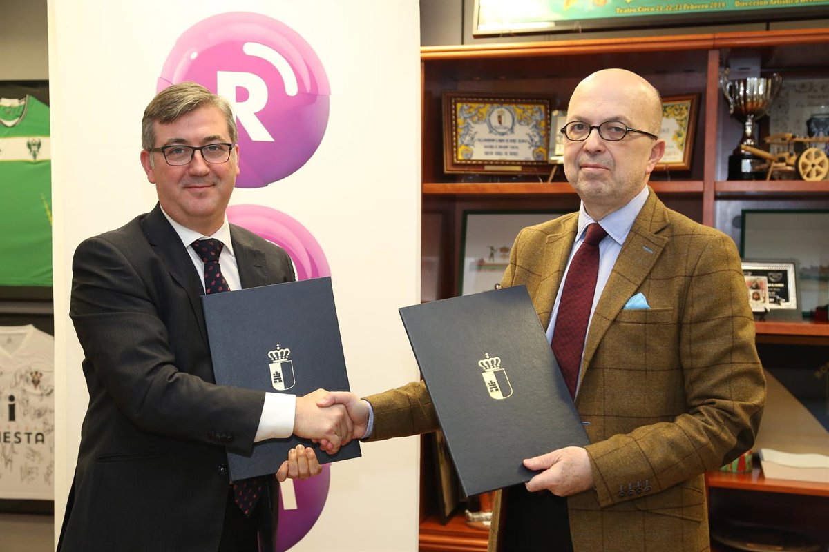 El consejero de Educación, Cultura y Deportes, Marcial Marín, y el director del ente público Radio Televisión Castilla-La Mancha (RTVCM), Ignacio Villa, han firmado un protocolo de colaboración para la promoción en 2015 de los actos y programas relativos a la conmemoración del V centenario del Nacimiento de Santa Teresa de Jesús y del IV centenario de la publicación de la Segunda Parte del Quijote.
