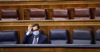 El ministro de Sanidad, Salvador Illa, durante en una sesión plenaria en el Congreso de los Diputados, en Madrid, (España), a 15 de octubre de 2020. Esta sesión se centrará en explicar el estado de alarma decretado en Madrid por el Covid-19. - POOL. Bernardo Díaz/El Mundo