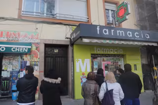 Varias personas hacen cola en una farmacia para adquirir un test de antígenos, a 23 de diciembre de 2021, en Madrid, (España). El Gobierno de la Comunidad de Madrid ha comprado 12 millones de tests de antígenos, seis que pondrán a disposición de los mad - Isabel Infantes - Europa Press