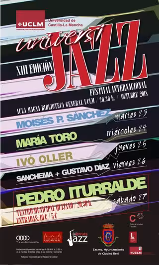 El veterano Iturralde compartirá programación en Universijazz, una de las actividades culturales de la UCLM con más tradición y alcance de público desde 2006, con Moisés P. Sánchez, encargado de abrir el festival el 23 de octubre. A éste le seguirá la flautista María Toro, el miércoles 24; el saxofonista Ivó Ollever, el 25; y el concierto doble del dúo Sanchema y de Gustavo Díaz, el viernes 26, y con el que el festival hace su pequeño guiño a los artistas de jazz en la región.
