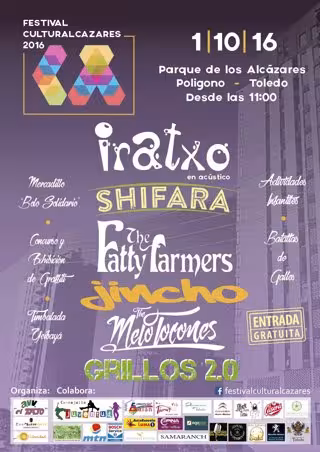 El Festival Culturalcázares 2016 se celebrará el próximo sábado 1 de octubre en el parque de Los Alcázares del barrio de Santa María de Benquerencia desde las 11.00 hasta la 1.30 horas (aproximadamente).
