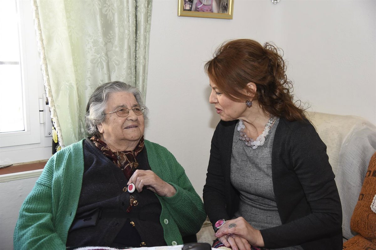 La consejera ha anunciado que Francisca contará con unos nuevos dispositivos que permitirán que se integre en la teleasistencia avanzada de la región, lo que supone que "va a llevar un dispositivo pegado al cuerpo para que, en caso de caída, la persona directamente a través del teléfono le va a atender", además de la instalación de un sensor de humos en el pasillo y un sensor de gas en la cocina.