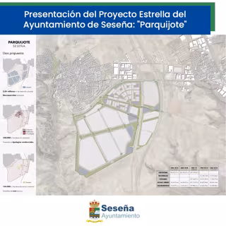 El Ayuntamiento de Seseña ha presentado a la Junta su proyecto "estrella", el 'Parquijote'. Este proyecto cubrirá 4,3 millones de metros cuadrados con zonas industriales, residenciales, áreas verdes y más.