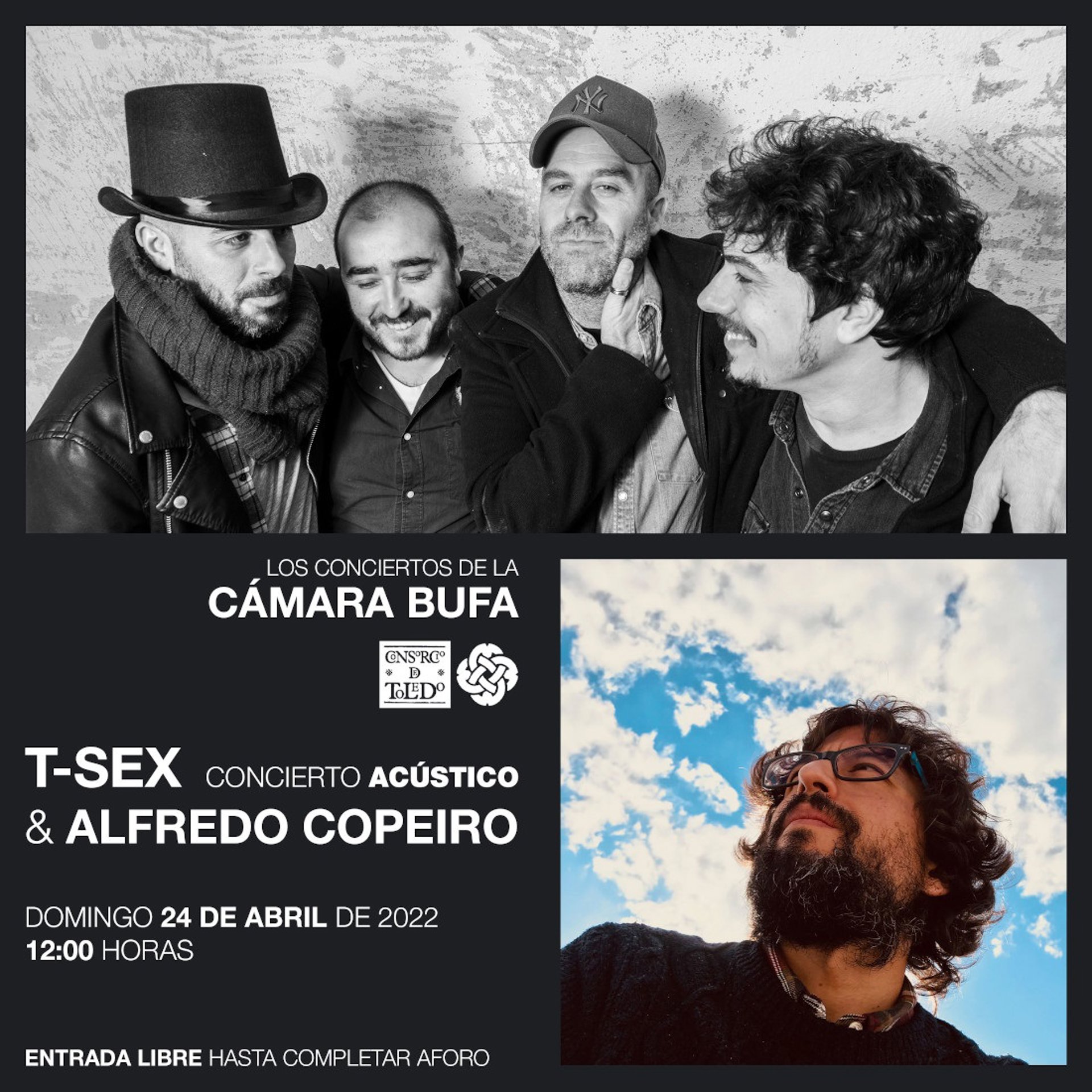 Cartel del concierto acústico de T-Sex y Alfredo Copeiro en la Cámara Bufa. - CONSORCIO