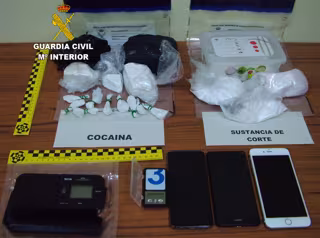 En total, la Guardia Civil ha intervenido unos 785 gramos de cocaína y sustancias para el corte de la misma, dos básculas de precisión, nueve teléfonos móviles y 695 euros procedentes de la venta de la droga.