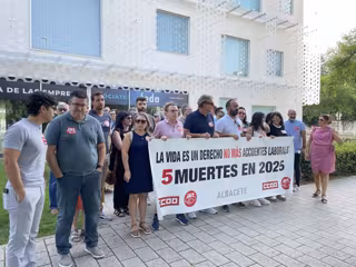 Delegadas y delegadas de CCOO y UGT Albacete han guardado un minuto de silencio en recuerdo de la trabajadora de 40 años que falleció en una finca de Pozo Hondo al ser arrollada por una máquina, y del trabajador de 55 años que murió al quedar atrapado en una empresa del Polígono de Romica. Dos accidentes que elevan a cinco el número de accidentes laborales mortales registrados en lo que va de año, denuncian en nota de prensa los sindicatos. , ha señalado que