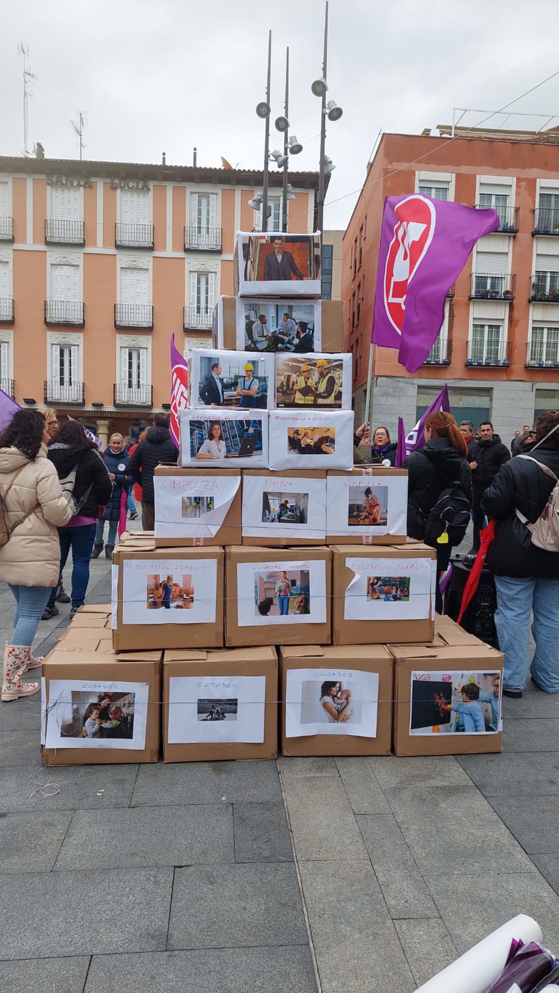 En el centro de la plaza han colocado una pirámide en la que se han podido ver los diferentes estratos y las distintas profesiones que hay y cómo los trabajos que, en general, sostienen la sociedad son las más feminizadas, incluyendo aquí las vinculadas con los cuidados y con áreas como la educación infantil.