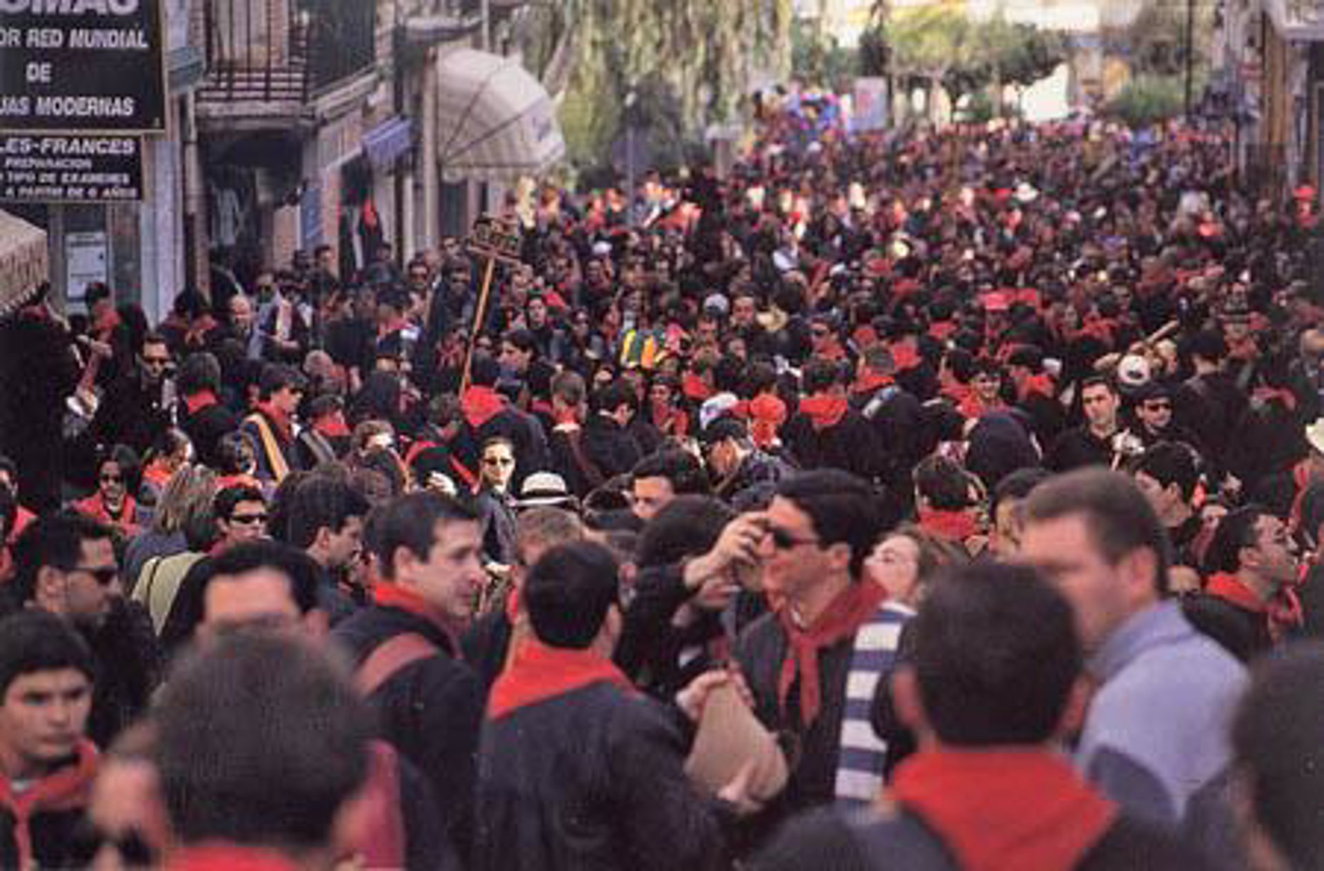 Los tambores estarán redoblando durante toda la noche hasta que, al amanecer, se dirigirán hasta el barrio del Calvario, donde esperarán la llegada de la procesión en los alrededores de la Ermita del mismo nombre.