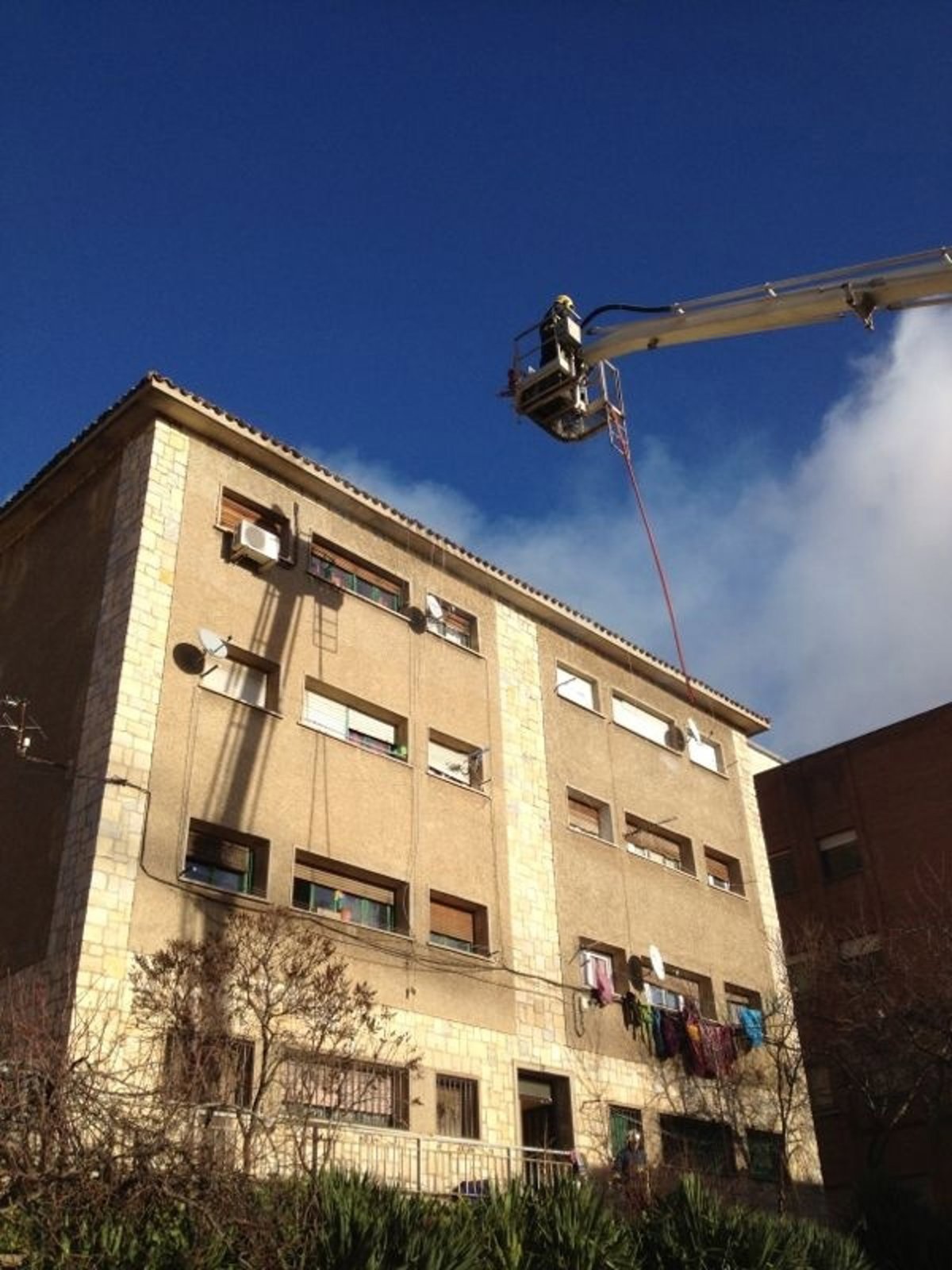 Las actuaciones de los bomberos se han llevado a cabo desde el interior y exterior del edificio debido a que los trasteros se encuentran situados en la tercera y última planta del inmueble, provocando daños importantes en la cubierta.