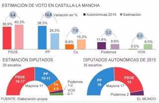 Gutiérrez ha mencionado la presencia de Vox en esta encuesta, algo que la hace "más creíble", la transferencia de votos del PP a esta formación y a Ciudadanos, mientras que el PSOE tiene "una fidelidad de voto muy alta" en la que los votantes socialistas en 2015 volverían a votar a García-Page.