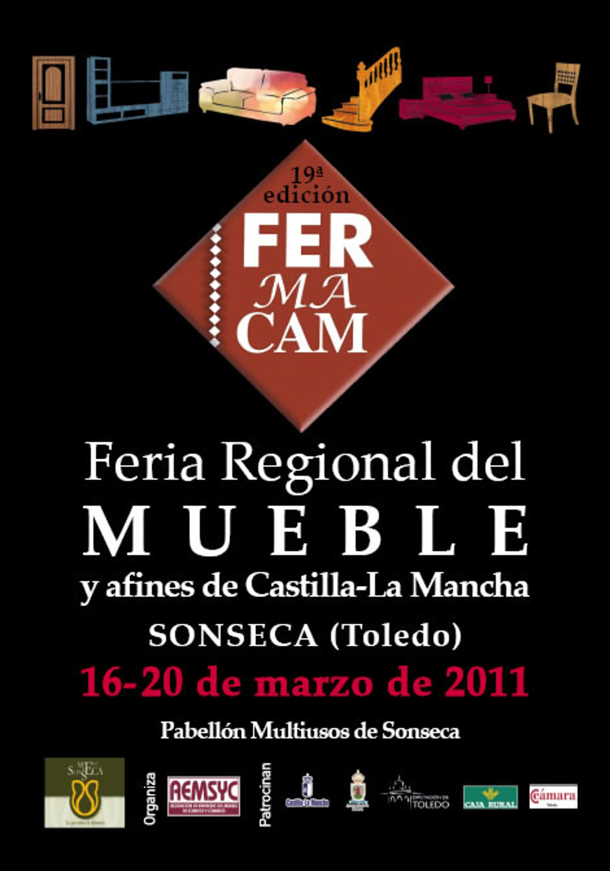 Sonseca (Toledo) acogerá del 16 al 20 de marzo la XIX Edición de la Feria Regional del Mueble y Afines de Castilla-La Mancha (FERMACAM 2011) que, organizada por la Asociación de Empresas del Mueble de Sonseca y Comarca (AEMSYC), abrirá sus puertas el mismo 16 de marzo a las 11.00 horas en la localidad toledana.