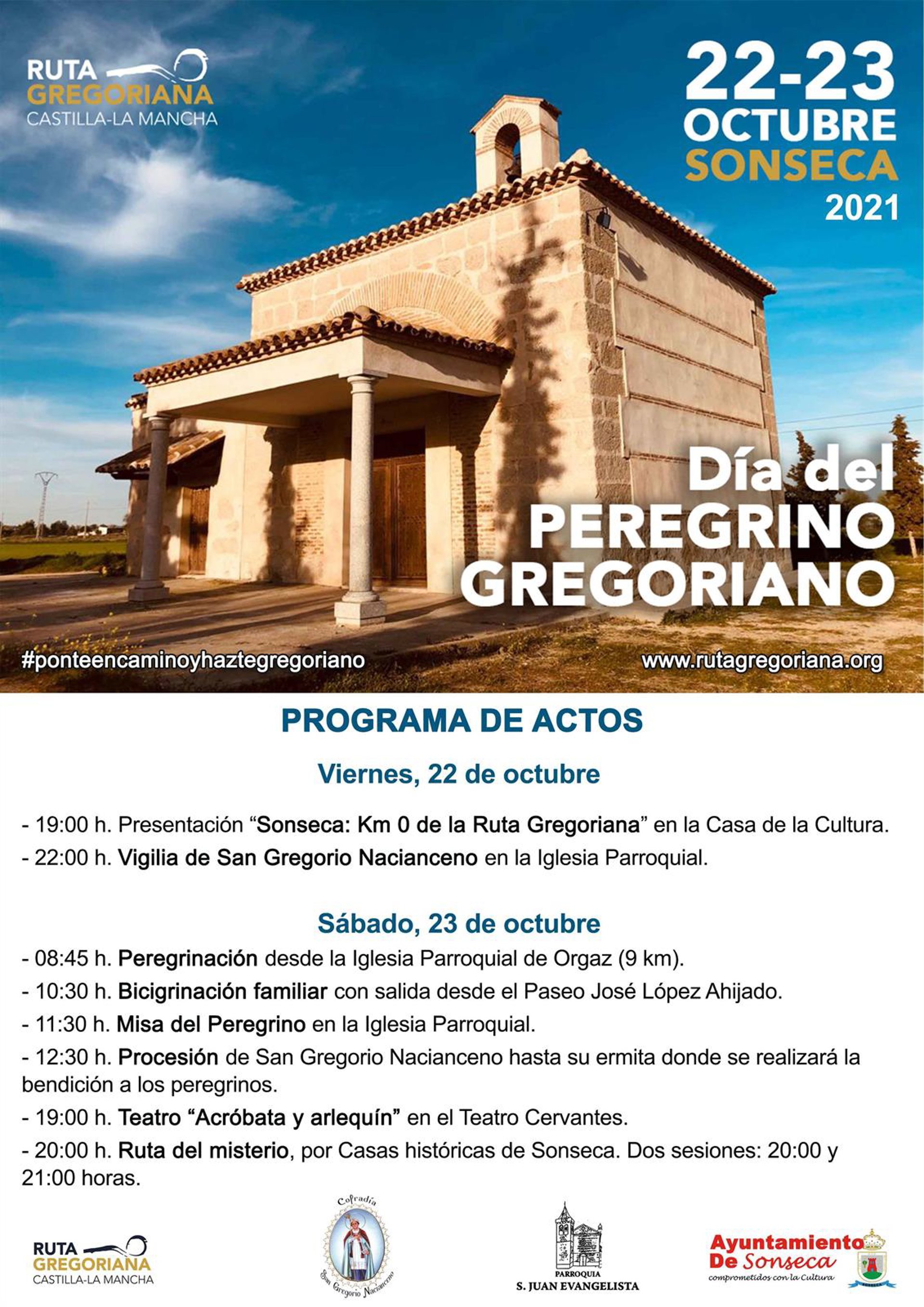 Los actos programados, organizados por la Cofradía de San Gregorio Nacianceno, la parroquia de San Juan Evangelista y el Ayuntamiento de Sonseca, comenzarán el viernes día 22 de octubre a las 19.00 horas, con la presentación de 'Sonseca: Kilómetro 0 de la Ruta Gregoriana' en la Casa de la Cultura, en la que se expondrá la ruta, así como la visión y nuevas oportunidades que ofrece a la localidad.