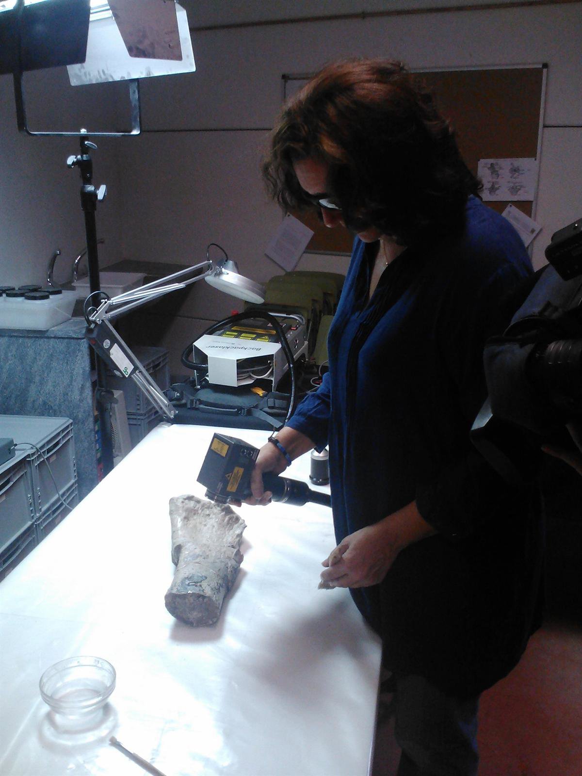 Así lo ha explicado una de las responsables del proyecto, Soledad Díaz, que ha dicho que el láser funciona como "un haz de luz direccionada que impacta con las costras de los materiales fósiles".
