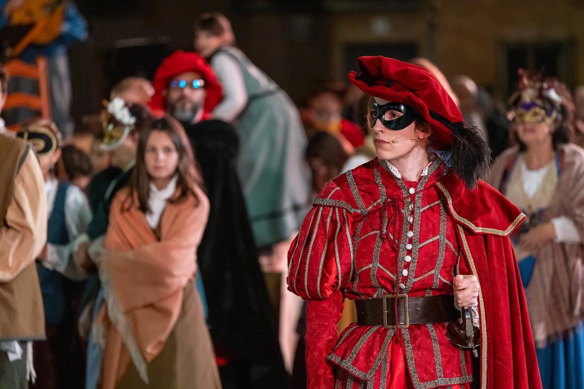 La representación del Tenorio Mendocino ha llenado este viernes las calles de Guadalajara con una gran afluencia de público en todas las escenas que recorrieron los principales monumentos de Guadalajara, para ganar la apuesta con Don Luis Mejía y ganarse el amor de Doña Inés.