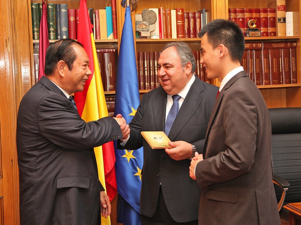 Tirado ha detallado a Xiuqi las características de Castilla-La Mancha y le ha transmitido la importancia de productos como el vino del que somos la primera región de Europa productora y Xiuqi se ha mostrado interesado por importar vino en su región.