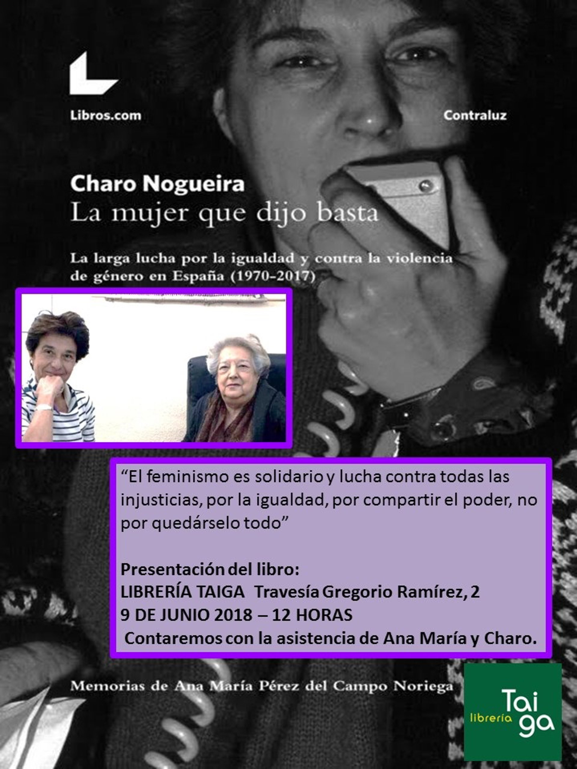 'EnClave Feminista' Club de Lectura de Toledo ha organizado la presentación del libro 'La mujer que dijo basta', biografía de Ana María Pérez del Campo Noriega escrita por Charo Nogueira, que tendrá lugar el próximo sábado, 9 de junio, en la librería Taiga.