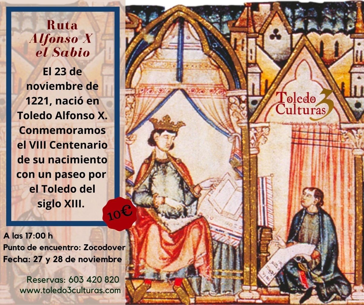 La cooperativa de guías oficiales de Toledo, 'Toledo 3 Culturas', quiere este fin de semana conmemorar el 800 aniverario del nacimiento en la ciudad del rey Alfonso X el Sabio y para ello propone una visita guiada que conjuga su legado cultural, su faceta política y la vida cotidiana en el Toledo del siglo XIII.