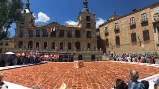 Se trata del segundo Guinness que se bate en la ciudad de Toledo dentro de las actividades programadas por la Capitalidad Gastronómica, ya que el pasado 23 de abril, con motivo del Día del Libro, dio a luz al mazapán más grande del mundo, con forma de Quijote, 600 kilos de peso y elaborado por el obrador de Santo Tomé.