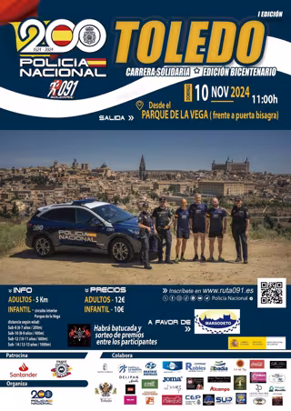 La Carrera Solidaria Ruta 091 --a iniciativa de la Jefatura Superior de Policía de Castilla-La Mancha con motivo del Bicentenario de la Policía Nacional-- tendrá lugar en Toledo el próximo 10 de noviembre, con un recorrido de 5 kilómetros, y sus beneficios irán destinados a la Federación Provincial de Entidades Pro Personas con Discapacidad Intelectual y Parálisis Cerebral de Toledo, Marsodeto.