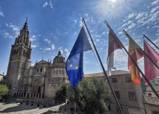 Archivo - Banderas en la plaza del Ayuntamiento de Toledo. - AYUNTAMIENTO - Archivo