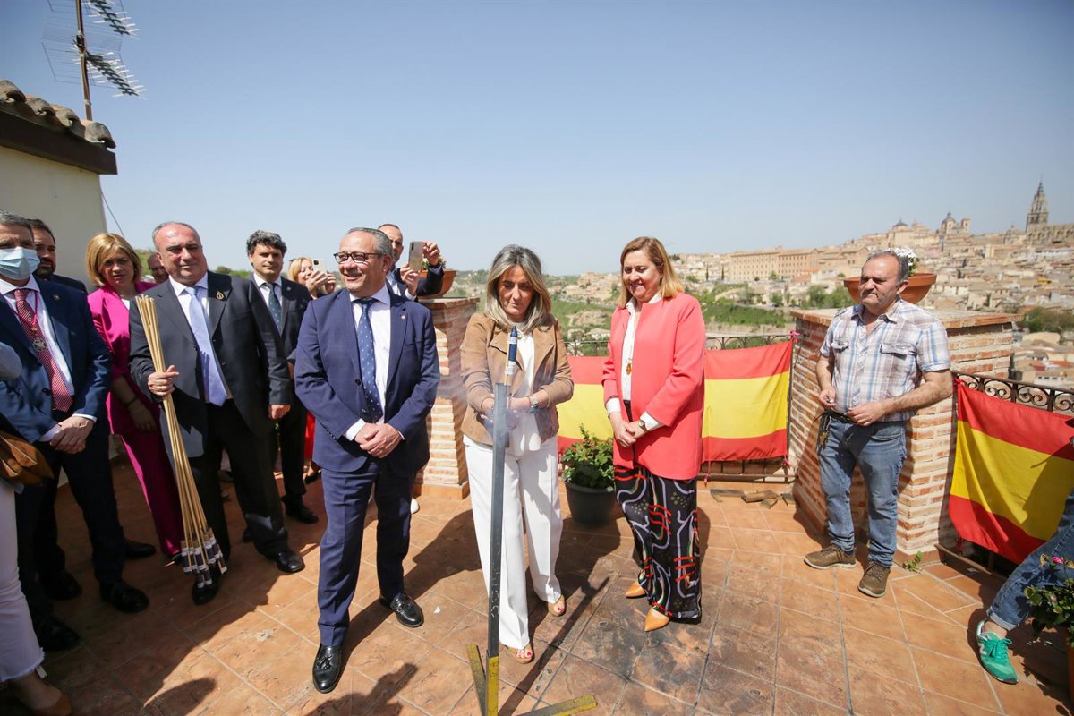 Desde la balconada de la Santería, la alcaldesa ha animado a los toledanos y toledanas a que disfruten juntos de este día que constituye, en suma, "una cita para recordarnos que somos un pueblo unido, fuerte y orgulloso de sus tradiciones, capaz de superar los envites más adversos y afrontar con optimismo el presente".
