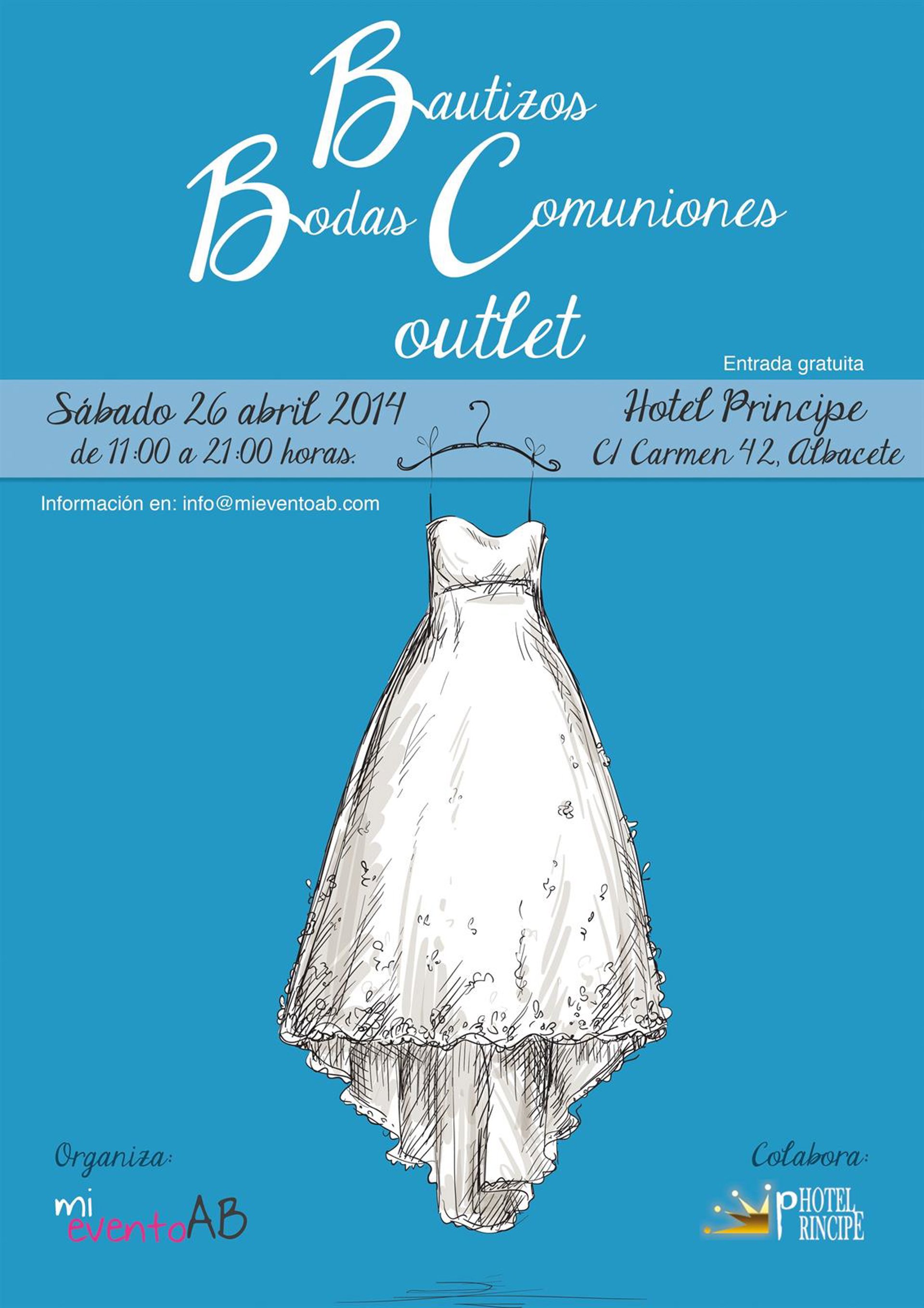 Esta primera Feria Outlet de Bodas, Bautizos y Comuniones se desarrollará en el Hotel Príncipe de Albacete de 11.00 a 21.00 horas, tal y como ha informado en nota de prensa la empresa organizadora Mi Evento AB.