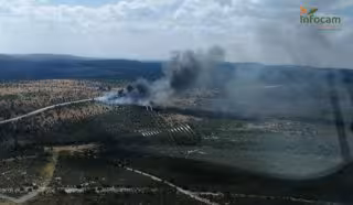 Un total de 18 medios y 96 personas siguen trabajando en el incendio forestal que se ha declarado en Mazarete (Guadalajara) después de que un camión cisterna cargado con 6.000 litros de combustible volcara en la CM-2120 y provocase un incendio en el vehículo que se ha propagado a una zona de pasto.