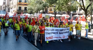 Tras partir de la Plaza de Zocodover, los manifestantes se han dirigido a la sede de la Gerencia del SESCAM, donde los presidentes de los cinco comités de empresa esperan ser recibidos por el gerente de transporte sanitario.