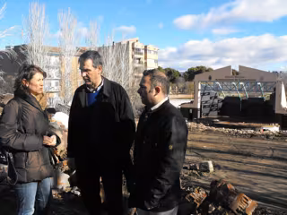 El alcalde de Guadalajara, Antonio Román, acompañado de los concejales de Infraestructuras y Parques, Jaime Carnicero y Ana Manzano, ha visitado esta mañana los trabajos de demolición del antiguo auditorio municipal, que comenzaron el pasado jueves, durarán dos semanas y generarán 4.200 toneladas de escombro.