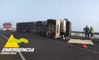 Bomberos del parque de Puertollano (Ciudad Real) han intervenido en la mañana de este viernes en las labores de rescate de un camionero herido atrapado en la cabina de un vehículo pesado. Según ha informado Emergencia 1006, el aviso se ha registrado sobre las 9.30 horas. El camión había volcado sobre el lateral izquierdo en la salida de la A-41 hacia Argamasilla de Calatrava y el complejo petroquímico.