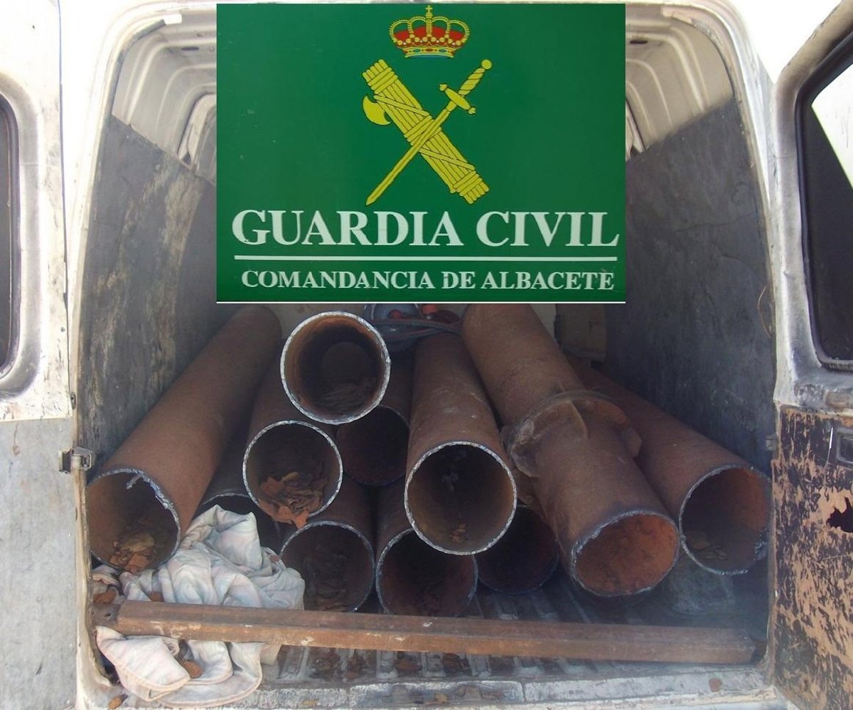Tras la parada de la furgoneta, se procedió a la identificación de sus ocupantes, y se comprobó que el vehículo portaba en la parte trasera 12 tubos de hierro de 2,20 metros de longitud y 27 centímetros de diámetro, de los cuales sus ocupantes no pudieron acreditar su legal procedencia.