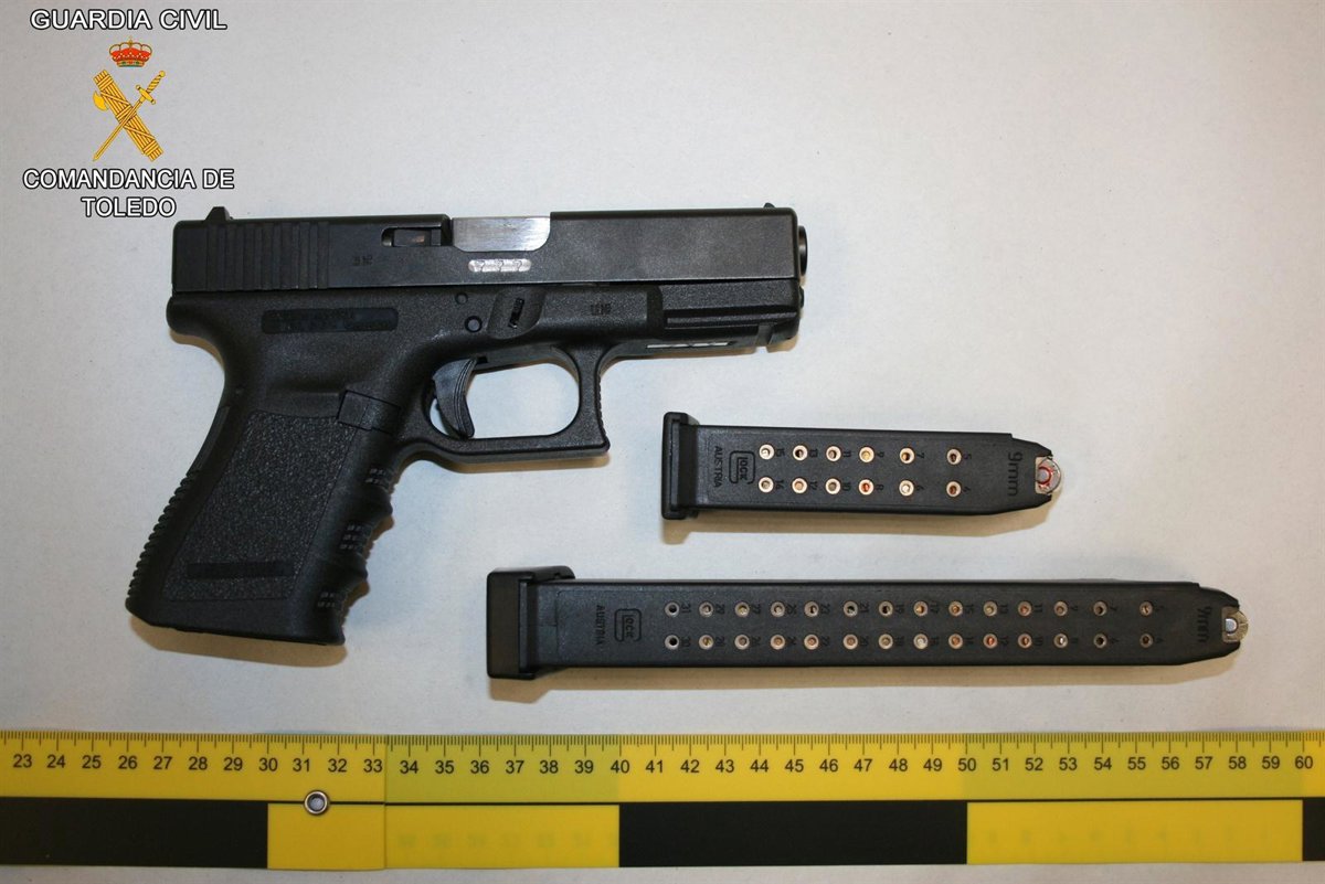 Bajo los asientos traseros del vehículo la Guardia Civil descubrió una pistola del mismo calibre junto con un cargador con capacidad para 32 cartuchos, municionado con 31 cartuchos. En la inspección del arma se observó que su número de serie había sido manipulado, no correspondiendo la numeración con el tipo de arma.