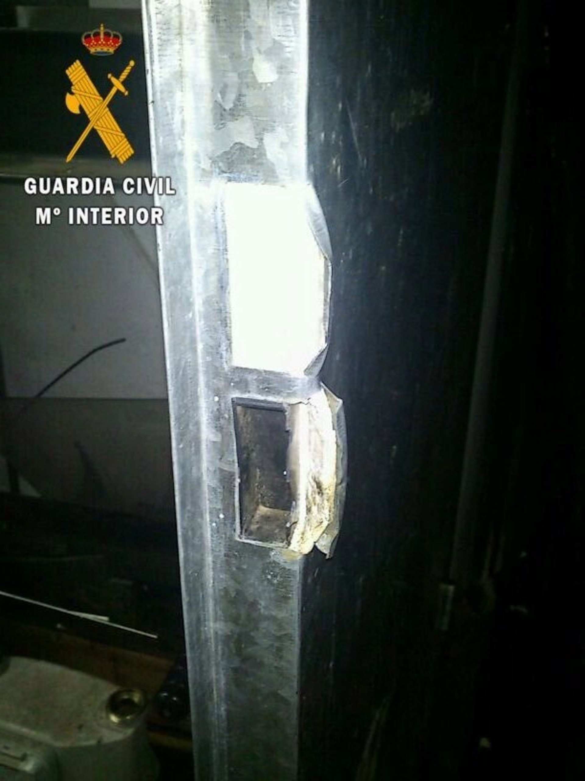 Los integrantes de esta patrulla de la Guardia Civil de Borox y de una segunda patrulla, perteneciente al cuartel de Esquivias, localizaron a dos hombres agazapados entre el terreno y la maleza que existe detrás de esta instalación, que fueron identificados como J.S.G. y O.M.C., éste último trabajador de esta empresa y conocedor de los horarios de trabajo y del material que había en el interior.
