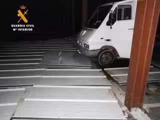 La Guardia Civil identificó a estos tres hombres, de nacionalidad rumana, dos de ellos con antecedentes policiales y descubrió que en el interior de la fábrica habían introducido un camión y un turismo, ambos propiedad de una de estas personas y que ambos se estaban cargando con el material del techo que estas personas estaban desmontando, de una superficie aproximada de unos 1.000 metros cuadrados.