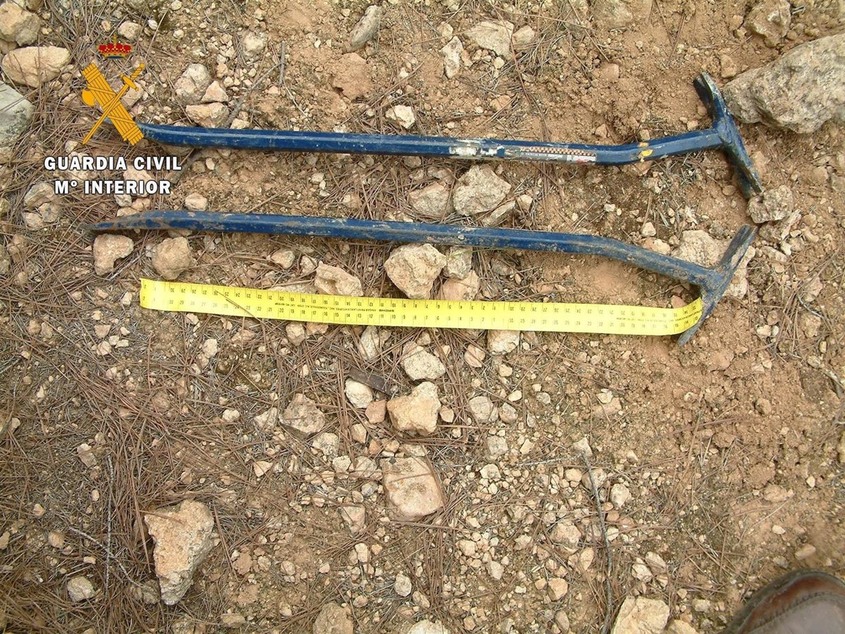 Estas personas, al verse descubiertas, huyeron hasta un pinar cercano a esta explotación donde, debido a las dimensiones del mismo, no se les pudo interceptar, pero sí se localizó una furgoneta que habían dejado oculta entre los pinos y que contenía 150 postes de emparrado, dos carretillas y dos palanquetas que utilizaban para desencajar los postes del suelo.