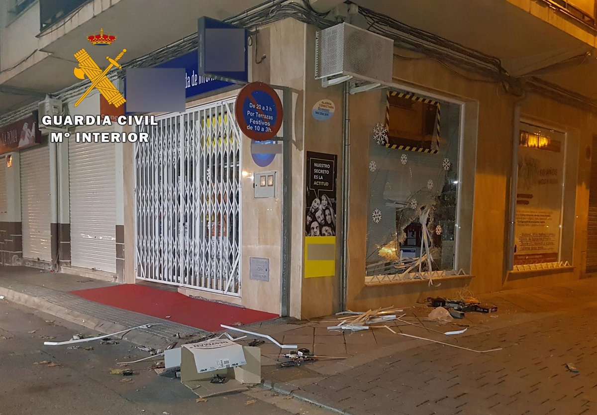 La Guardia Civil ha detenido a tres personas, una de 42 años y las otros dos de 23, en el municipio albaceteño de La Roda por haber sustraído efectos de un establecimiento de telefonía e informática, al que accedieron tras practicar un butrón en el cristal del escaparate, y darse a la huida con la intención de trasladarse a Albacete con un vehículo que también habían robado con anterioridad.