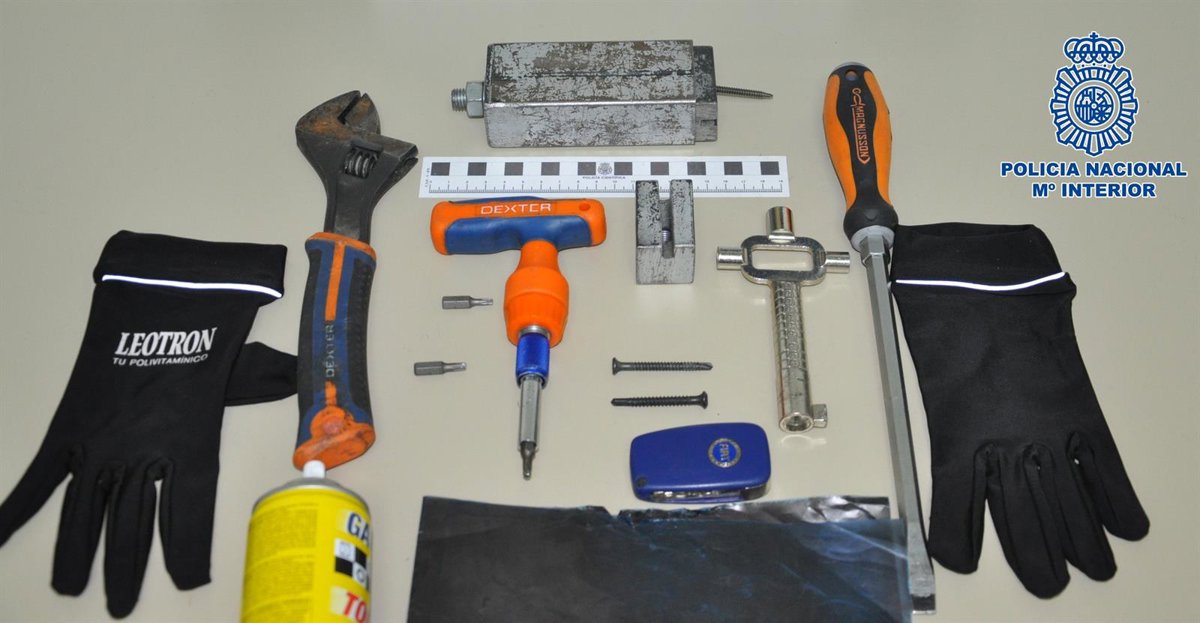En el cacheo practicado por los agentes les fueron intervenidas herramientas destinadas específicamente al forzamiento de cerraduras, entre ellas un extractor de bombines, así como llaves y tornillos de diferentes medidas.