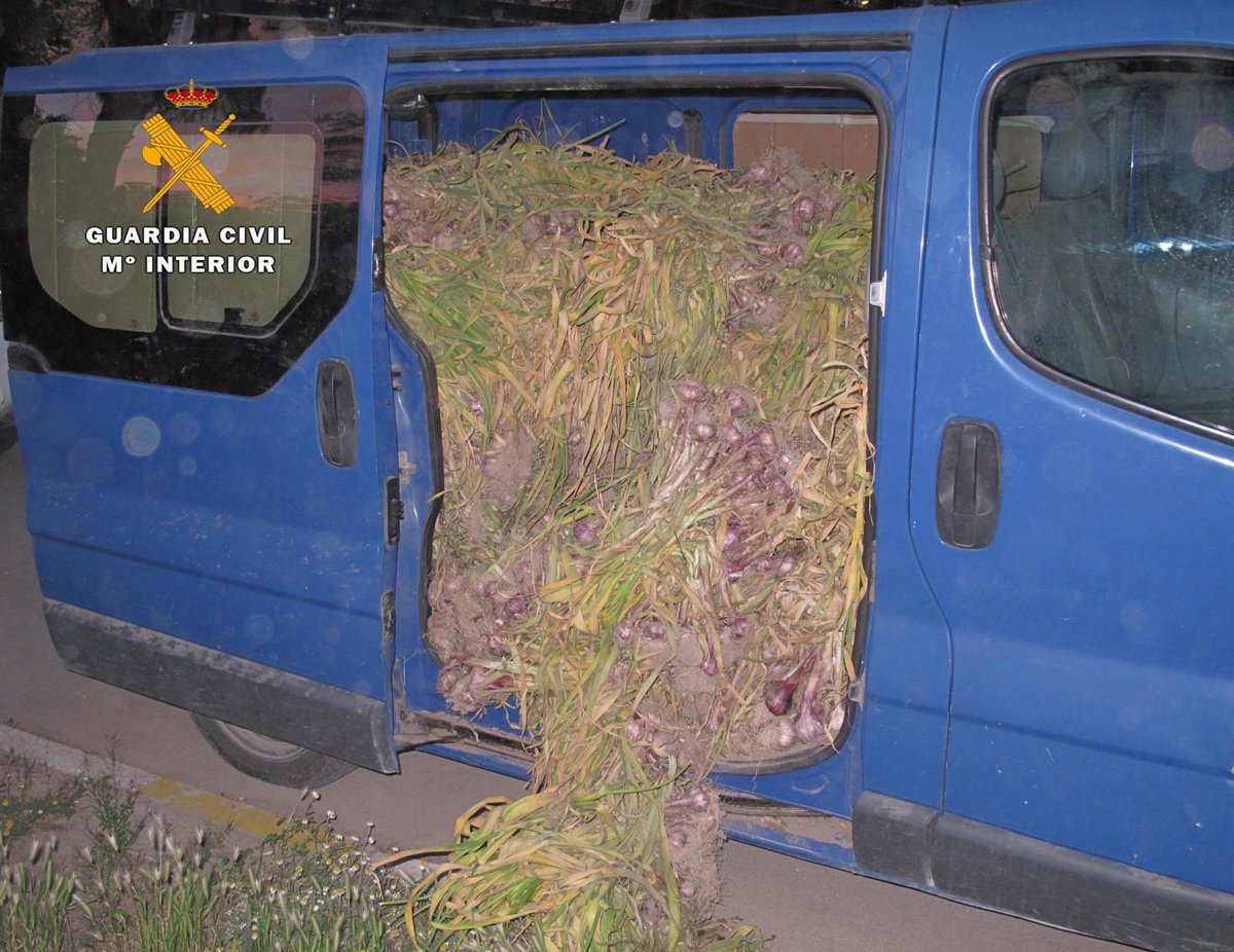 Los 1.200 kilos de ajos recuperados fueron reconocidos por el propietario del terreno donde se sustrajeron al coincidir en su variedad, cantidad, y en el precinto con el que fueron embalados, según ha informado la Delegación del Gobierno en nota de prensa.
