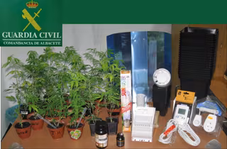 Fueron sorprendidos en un control de vehículos que la Guardia Civil había establecido en el kilómetro 13,900 de la carretera CM-3206, término municipal de Yeste. En el registro del turismo se hallaron, ocultas en el maletero y dentro de una caja, 20 plantas de marihuana de unos 30 centímetros de altura cada una, con un peso aproximado de cinco kilogramos, todas ellas en sus maceteros.