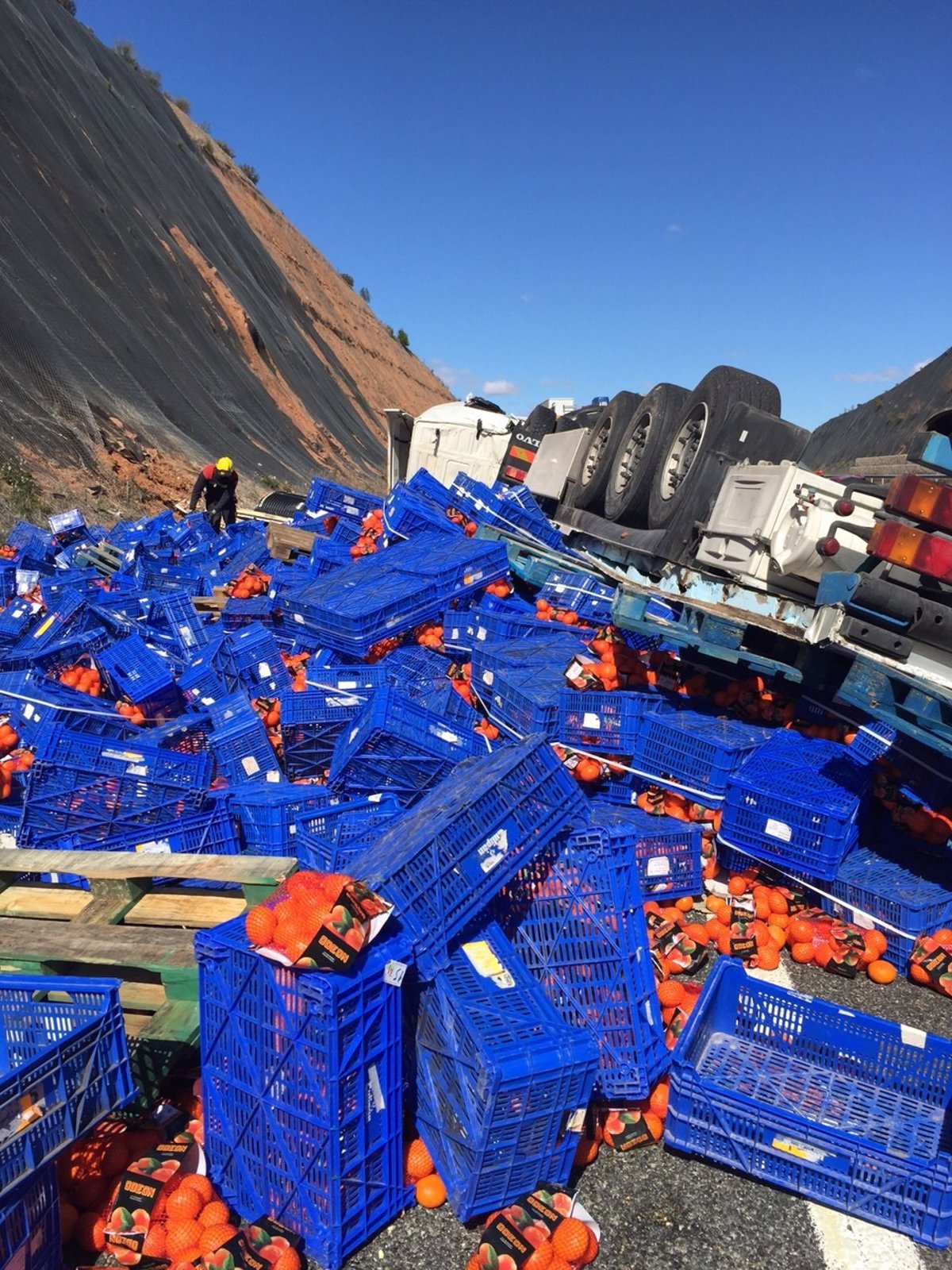Tres personas han resultado heridas tras el choque entre un camión que transportaba naranjas y una furgoneta en el kilómetro 240 de la A-4, sentido Madrid, a la altura de la localidad conquense de Minglanilla.
