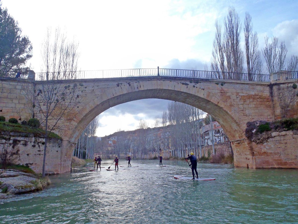 El domingo, igualmente a partir de las 9.30 horas, los palistas descenderán por el río Tajo sobre un recorrido de 14 kilómetros que es idéntico al que recorren los competidores en el descenso veraniego. Los primeros 5 kilómetros se hacen en aguas tranquilas, mientras que, a partir del sexto y después de descender por una rampa de 20 metros, comenzará el descenso por rápidos de los nueve kilómetros restantes hasta llegar al municipio de Trillo. La graduación del río para la modalidad de SUP-River es de grado II, con trenes de olas de no más de medio metro y pasos sin peligro alguno para un nadador.