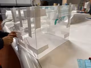 Investigadores de la Escuela Superior de Informática de la Universidad de Castilla-La Mancha (UCLM) en el Campus de Ciudad Real, en colaboración con la empresa Impresiona Rotulación, han fabricado unas cajas de aerosol para la protección de los sanitarios durante la intubación de pacientes infectados con el virus SARS-CoV-2.