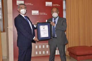 La Universidad de Castilla-La Mancha (UCLM) es la primera institución universitaria española, y hasta la fecha única, que ha logrado el certificado UNE-ISO/PAS 45005 en 'Seguridad y Salud frente al COVID-19 en el Trabajo' que otorga AENOR. De esta forma, la Universidad regional vuelve a demostrar su firme compromiso para ganar la batalla a la COVID-19 y su apuesta continua por prevenir riesgos laborales entre sus miembros.
