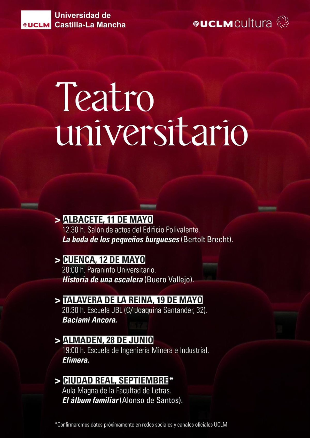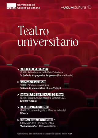 La Universidad de Castilla-La Mancha (UCLM) recupera el teatro universitario con un ciclo que llenará las tablas de los campus de Albacete, Ciudad Real, Cuenca y Toledo y las sedes de Talavera de la Reina y Almadén.